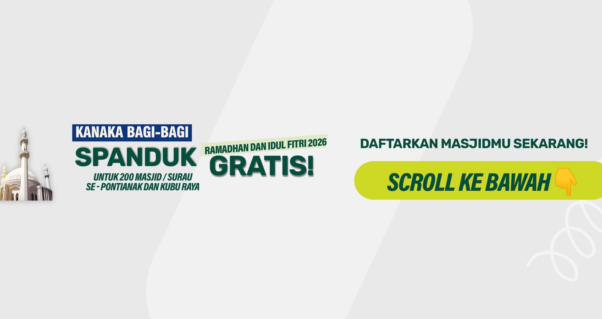 Kuota Terbatas Hanya Untuk 200 Masjid / Surau Se-Kota Pontianak dan Kubu raya, Yuk daftarkan masjid / surau mu sekarang!